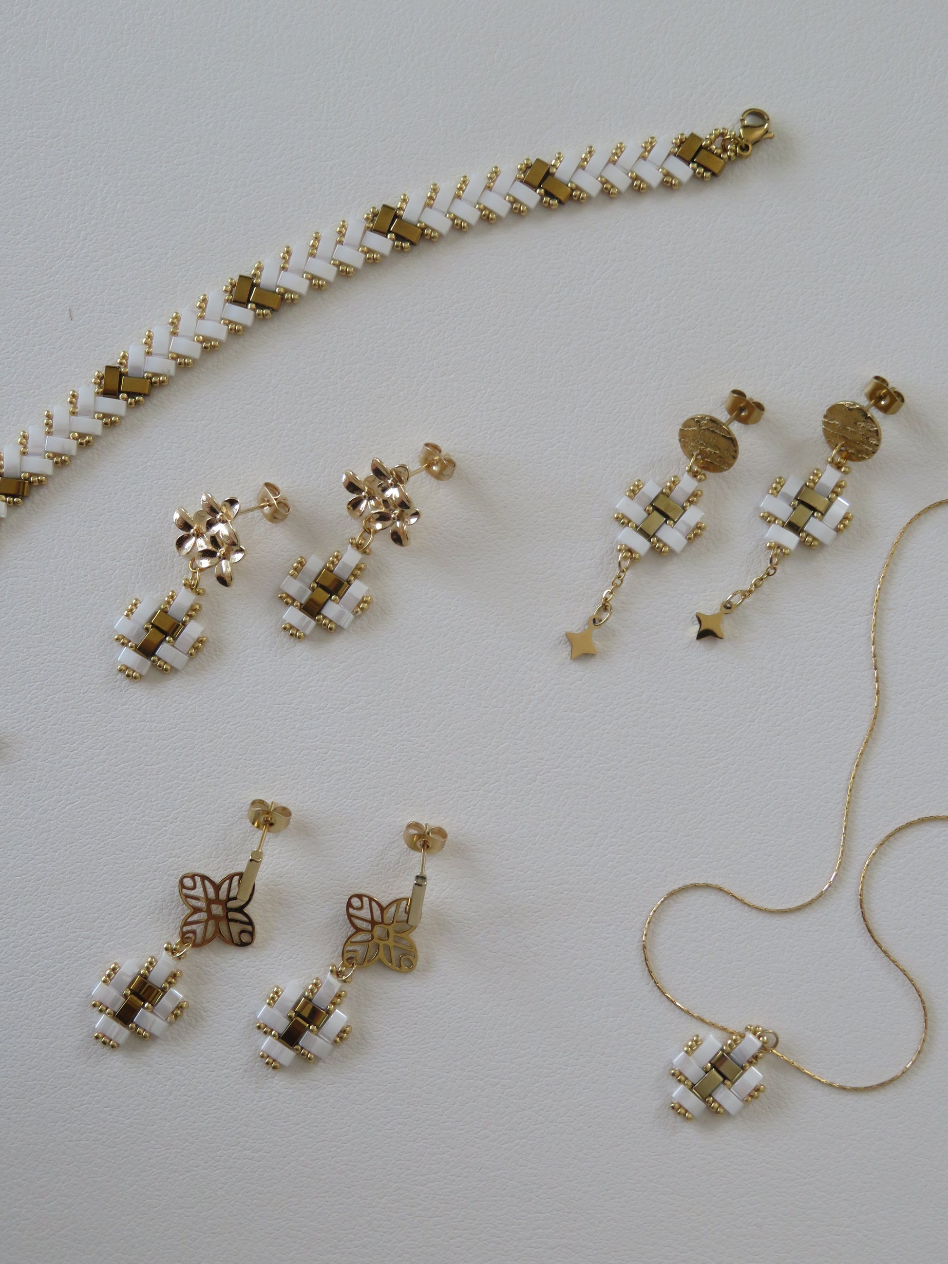 Ces boucles d’oreilles tissées à la main en perles japonaises sont une création artisanale réalisée dans mon atelier en France. Chaque paire est minutieusement travaillée pour offrir un bijou à la fois léger, élégant et confortable à porter au quotidien.