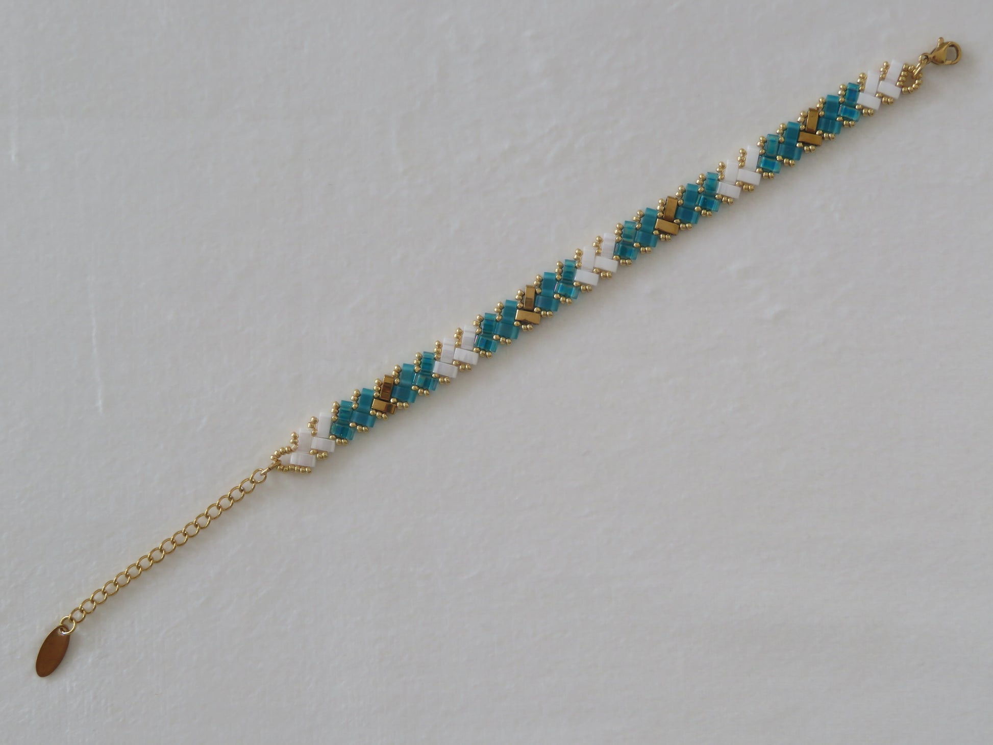 Bracelet 1 rang bicolor sarcelle doré