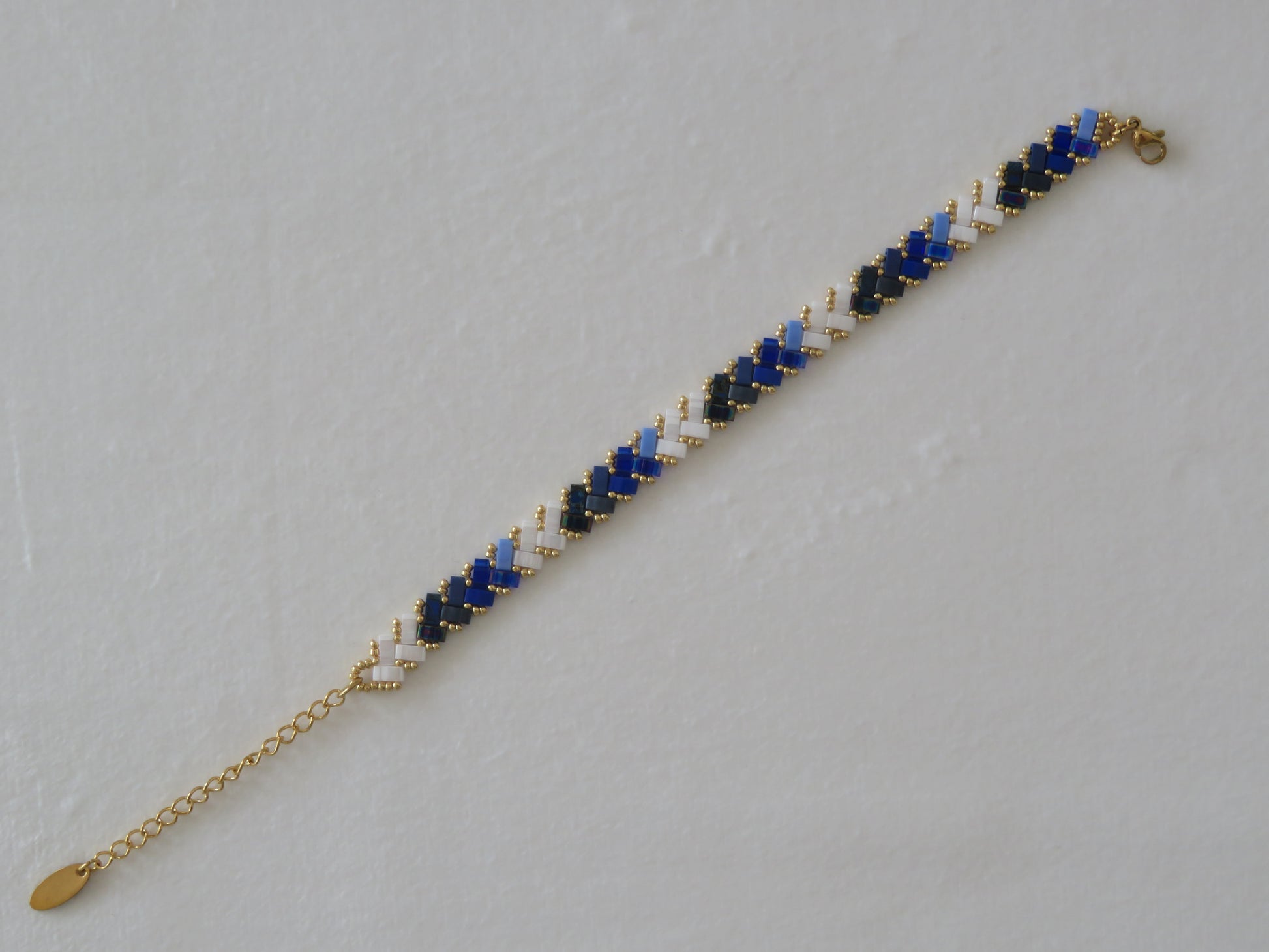 Ce bracelet 1 rang fait main en France met en valeur la finesse des perles japonaises Miyuki, sélectionnées avec soin pour leur éclat et leur régularité. Son tissage délicat crée une ligne élégante et lumineuse qui capte subtilement la lumière à chaque mouvement. Chaque bracelet est entièrement assemblé à la main dans mon atelier, faisant de chaque pièce un bijou artisanal unique.