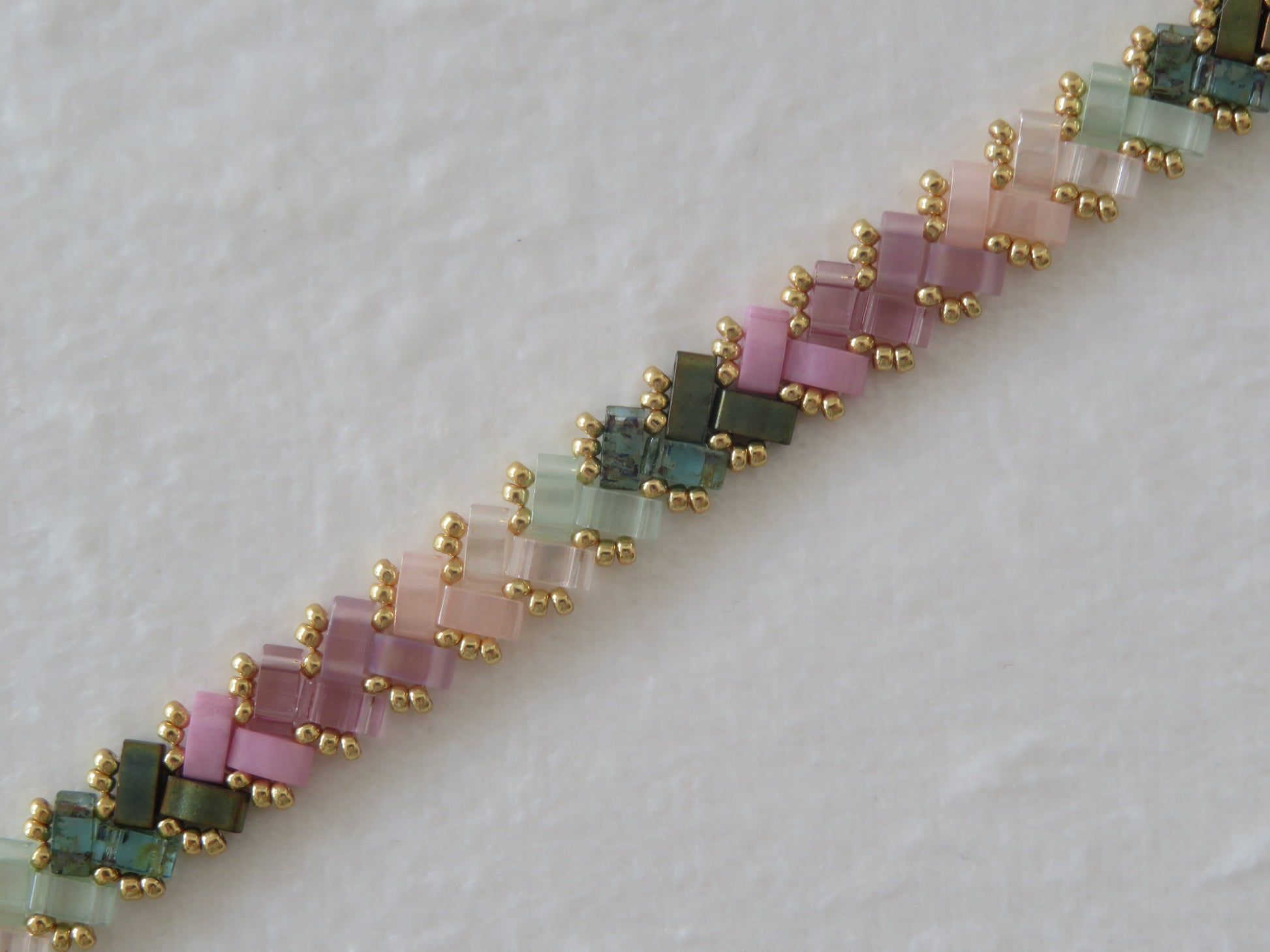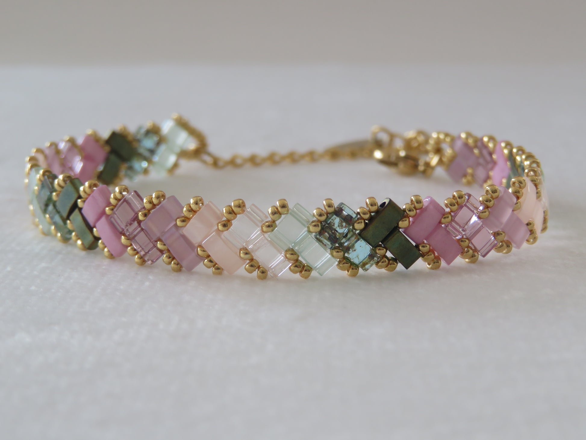 Ces bracelets tissés avec des perles en verre japonaises Miyuli Half Tila sont d'une légèreté et d'une souplesse incomparable ! Ils glisseront autour de vos poignets et apporteront un éclat de couleurs à votre tenue.