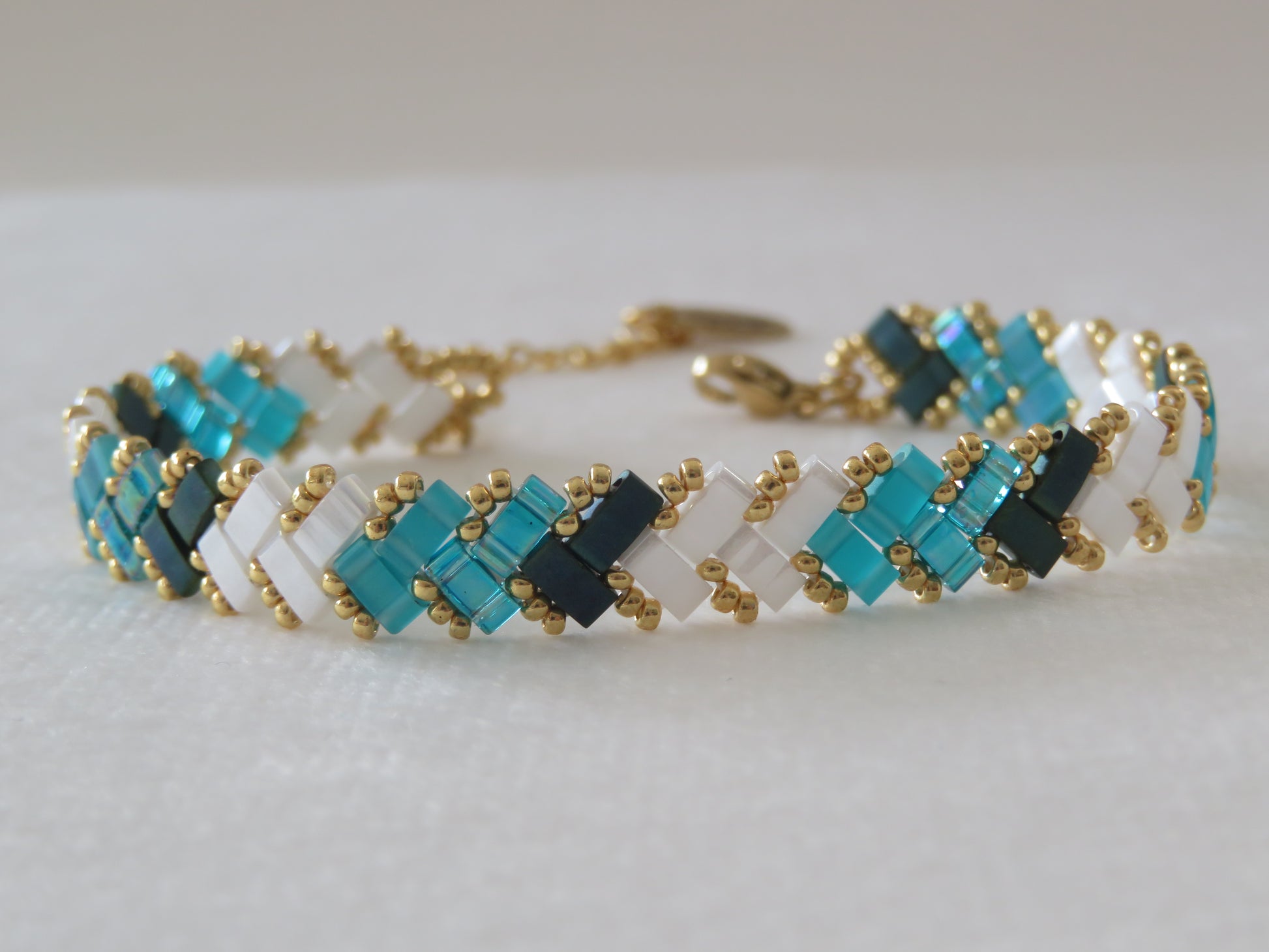 Ces bracelets tissés avec des perles en verre japonaises Miyuli Half Tila sont d'une légèreté et d'une souplesse incomparable ! Ils glisseront autour de vos poignets et apporteront un éclat de couleurs à votre tenue.