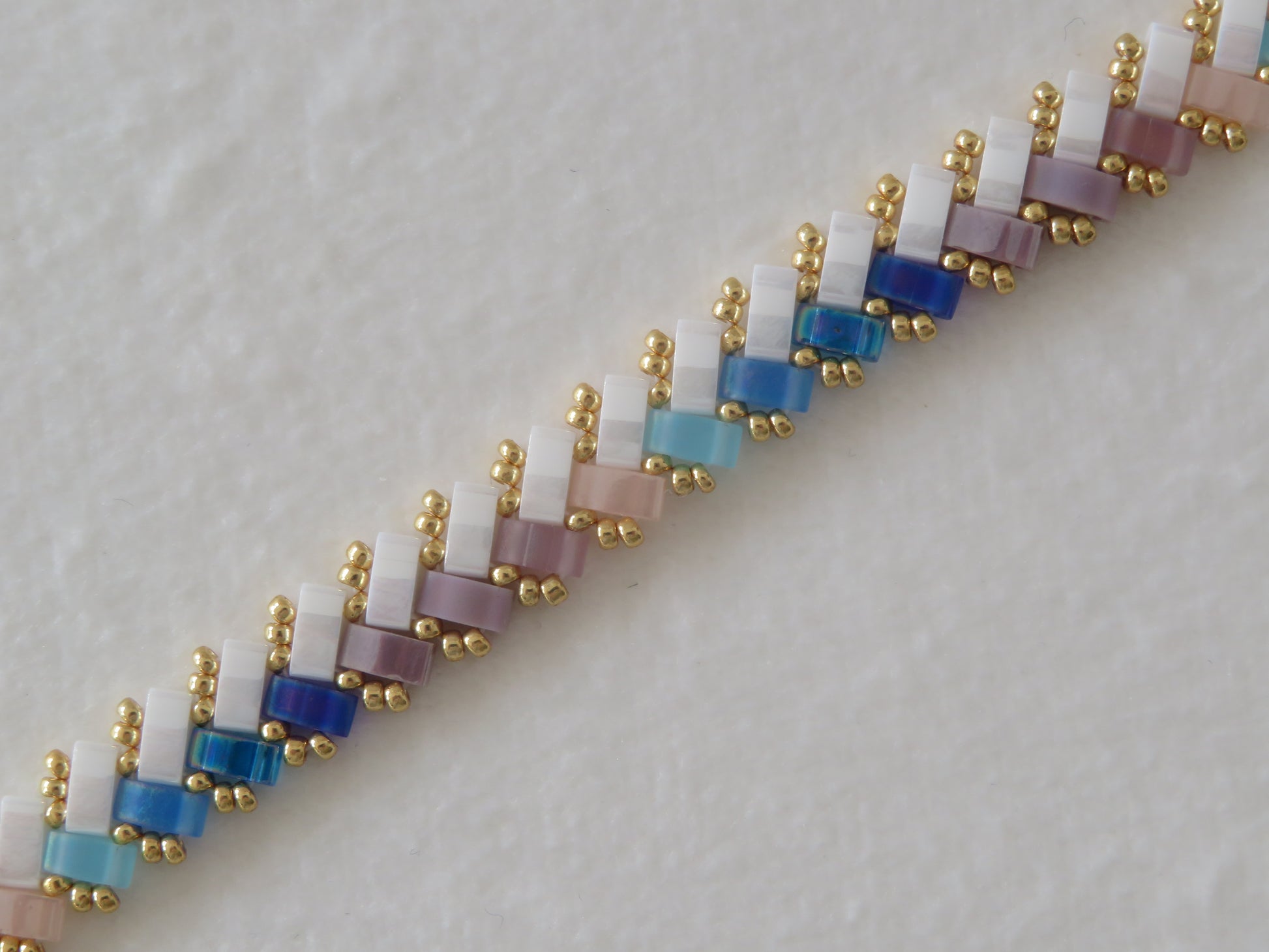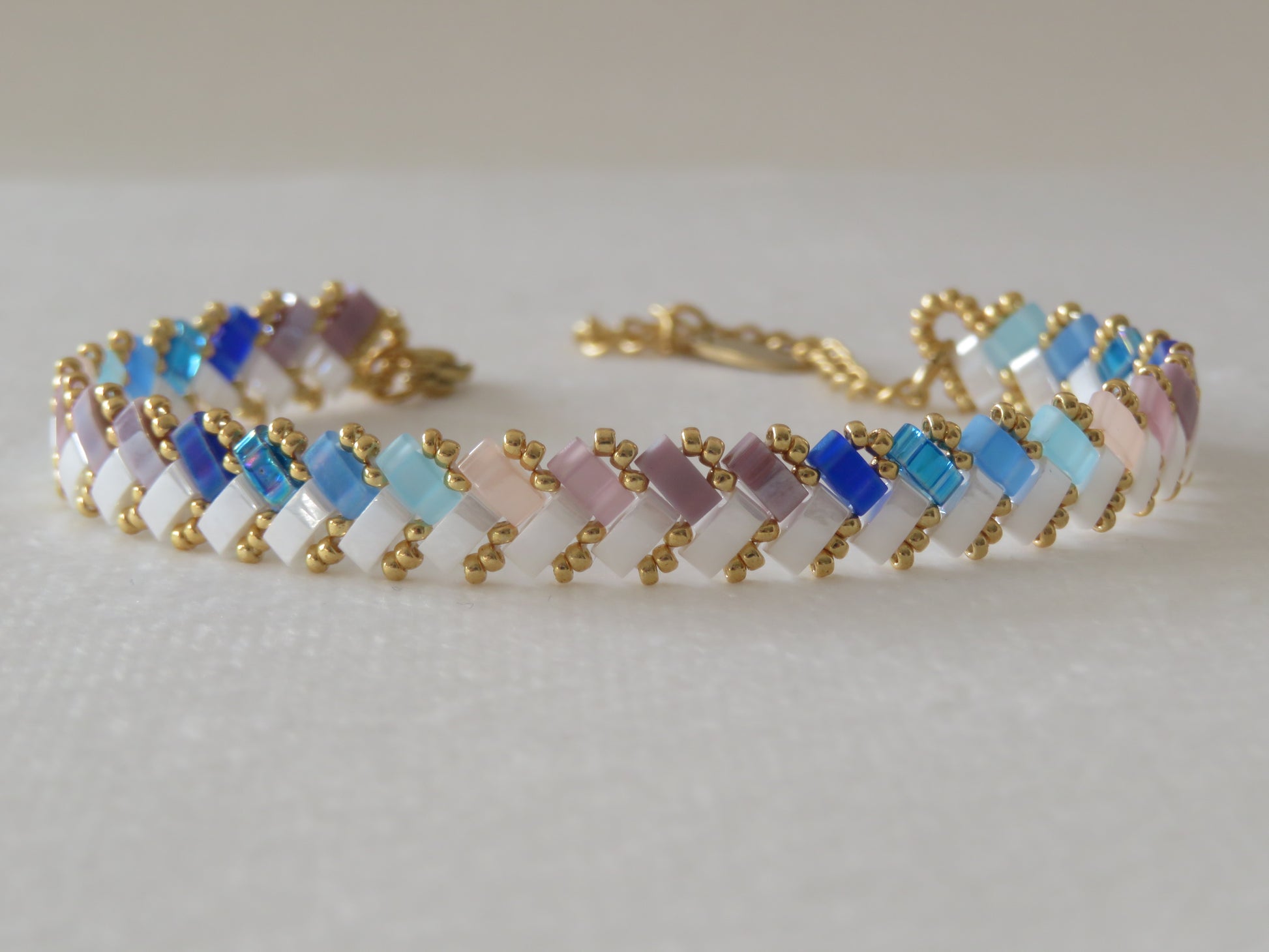 Ces bracelets tissés avec des perles en verre japonaises Miyuli Half Tila sont d'une légèreté et d'une souplesse incomparable ! Ils glisseront autour de vos poignets et apporteront un éclat de couleurs à votre tenue.