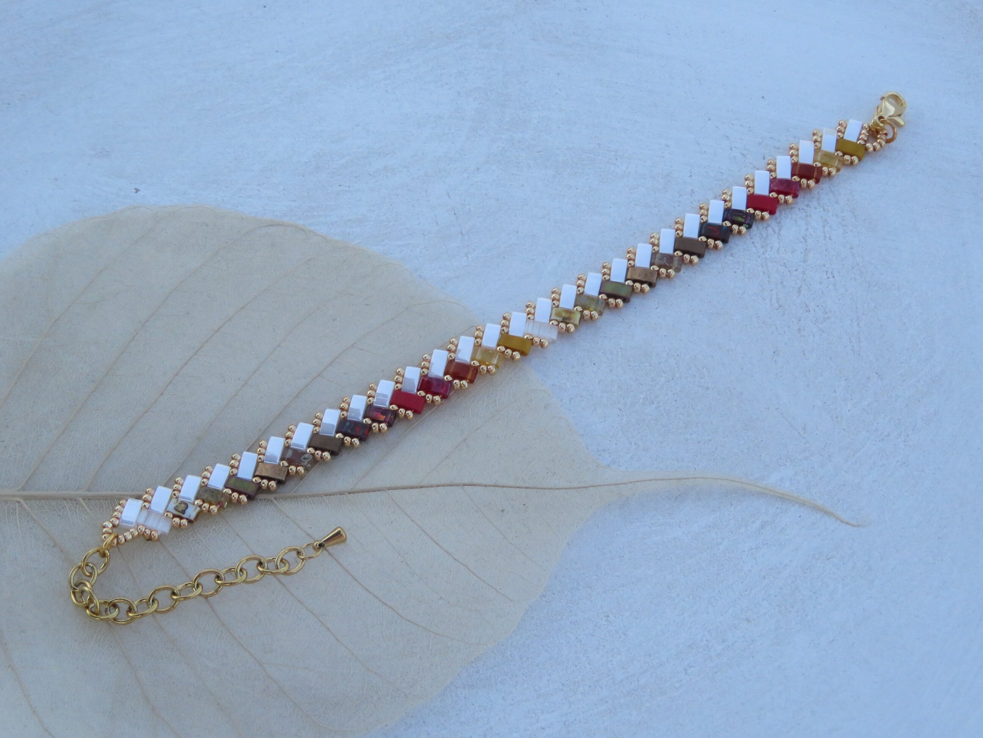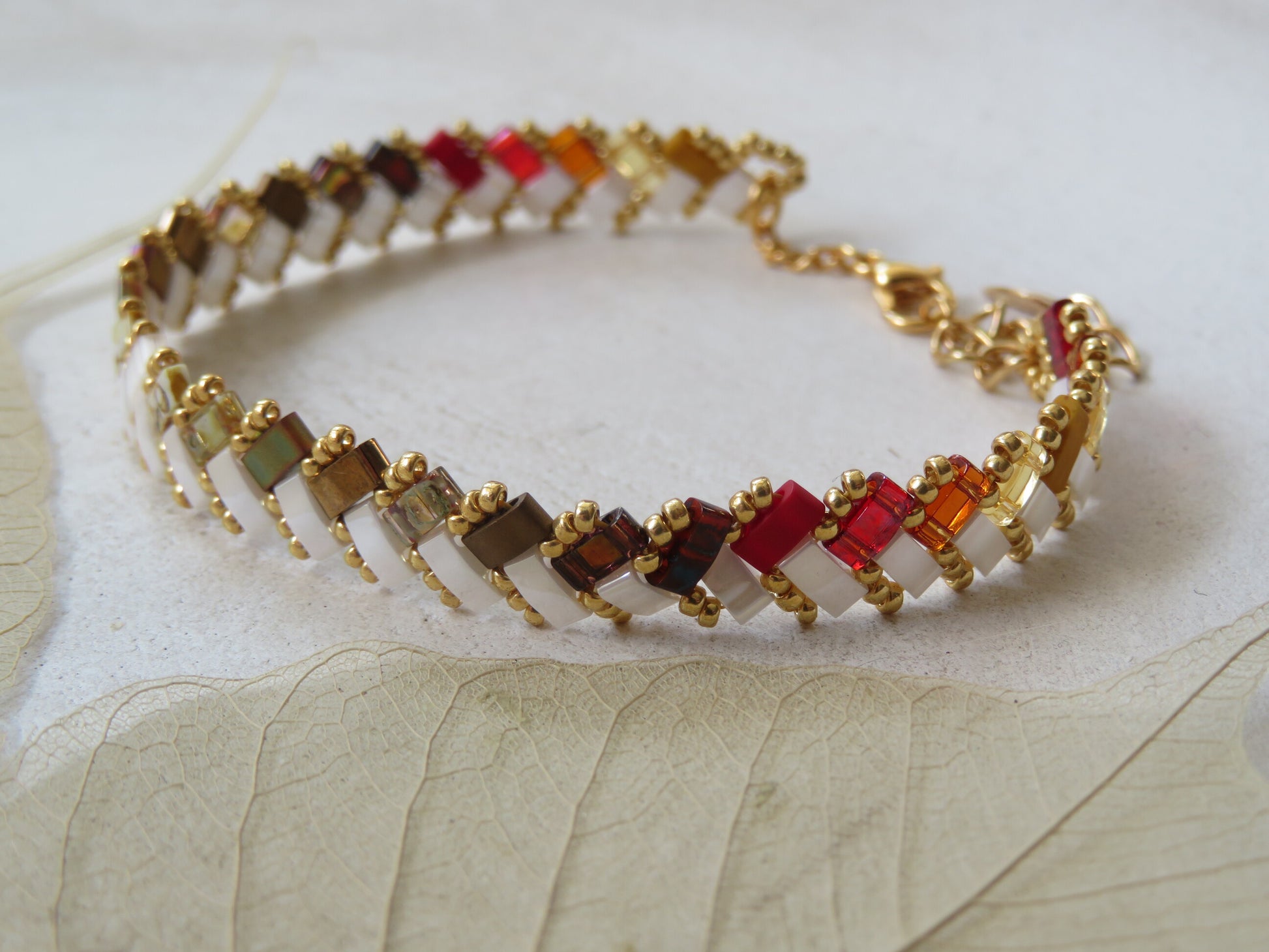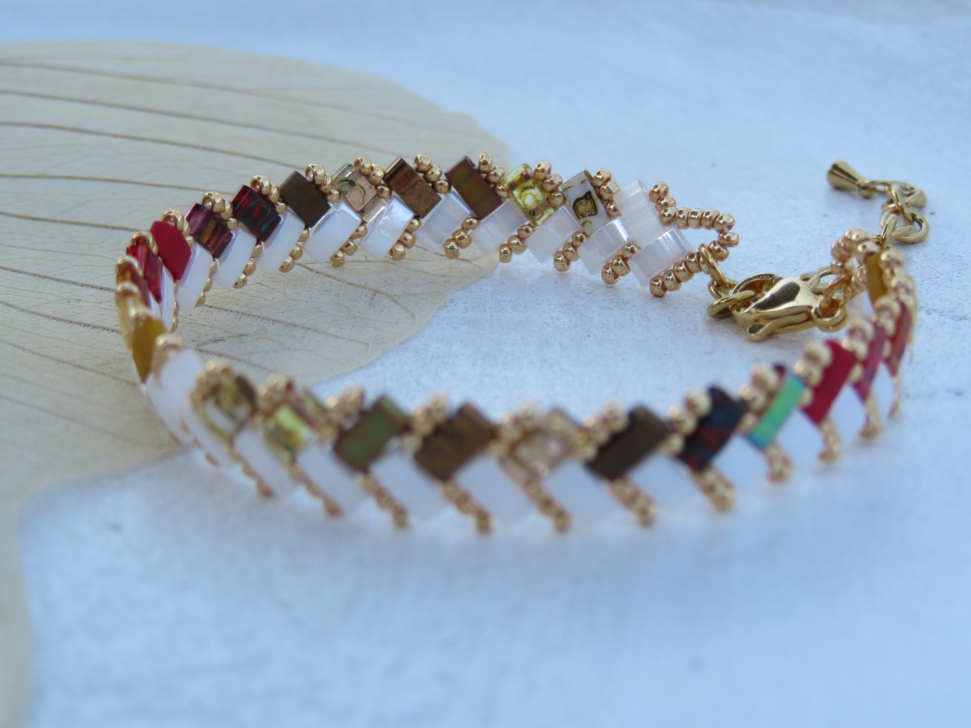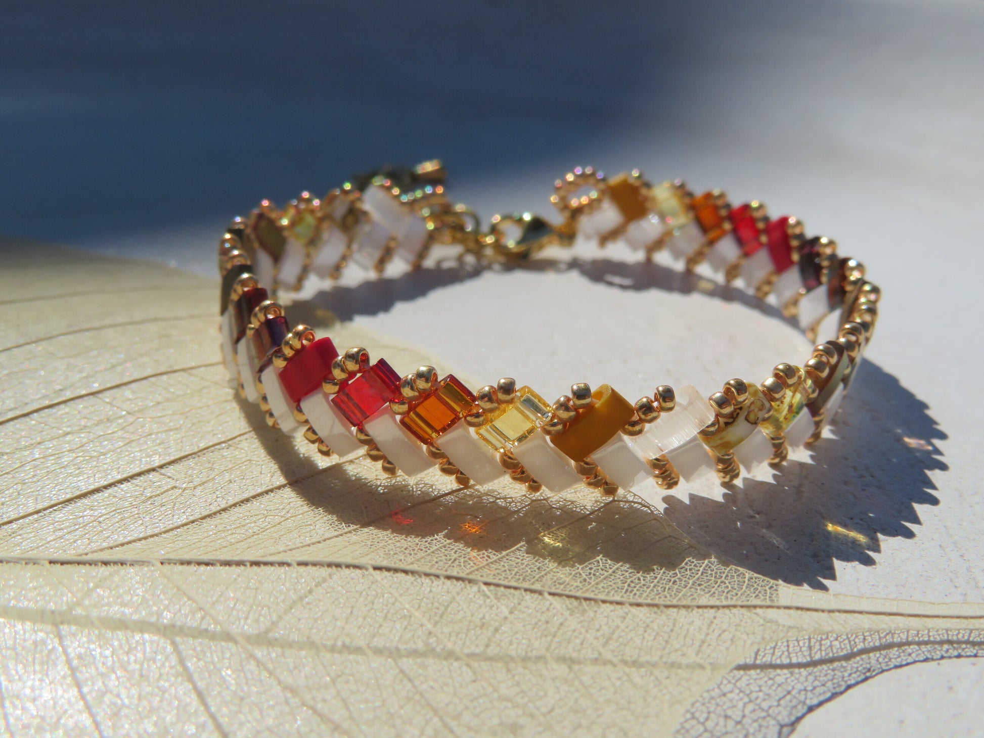 These bracelets woven with Miyuli Half Tila Japanese glass beads are incomparably light and flexible! They will slip around your wrists and bring a burst of color to your outfit.