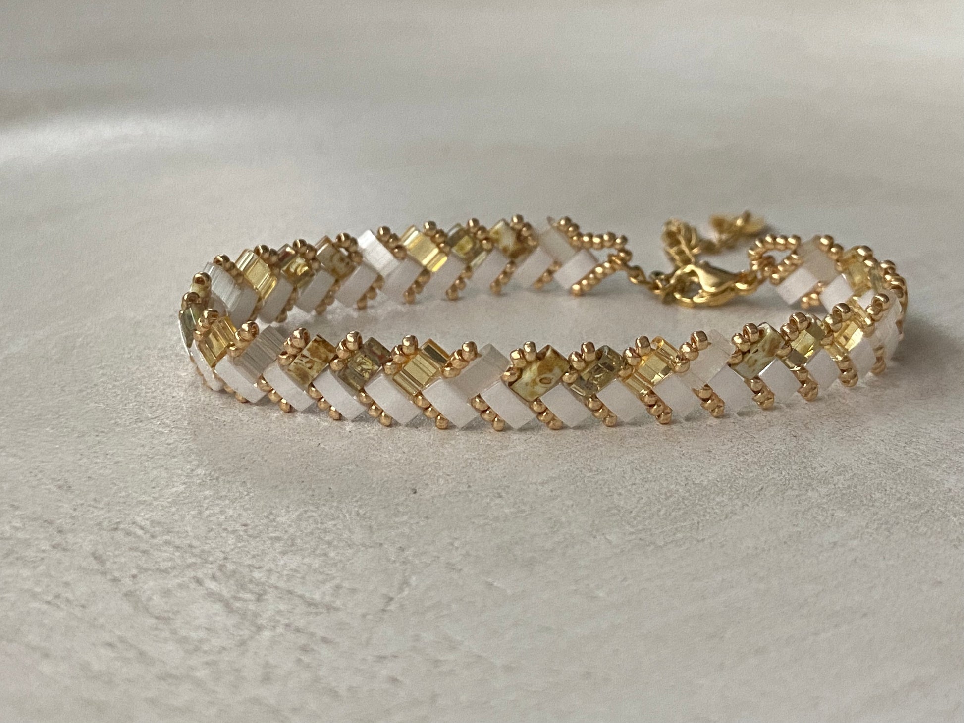 These bracelets woven with Miyuli Half Tila Japanese glass beads are incomparably light and flexible! They will slip around your wrists and bring a burst of color to your outfit.