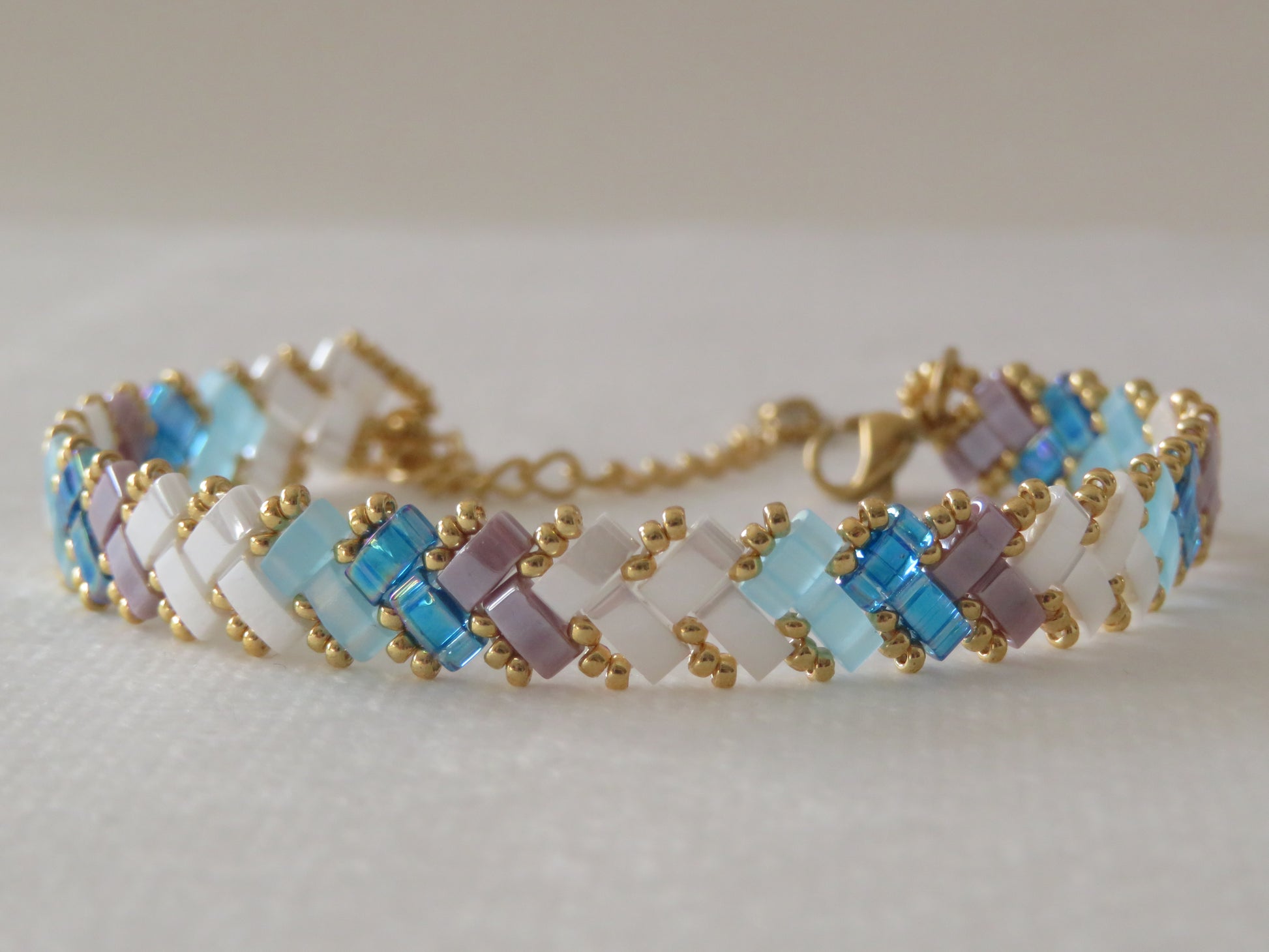 Ces bracelets tissés avec des perles en verre japonaises Miyuli Half Tila sont d'une légèreté et d'une souplesse incomparable ! Ils glisseront autour de vos poignets et apporteront un éclat de couleurs à votre tenue.