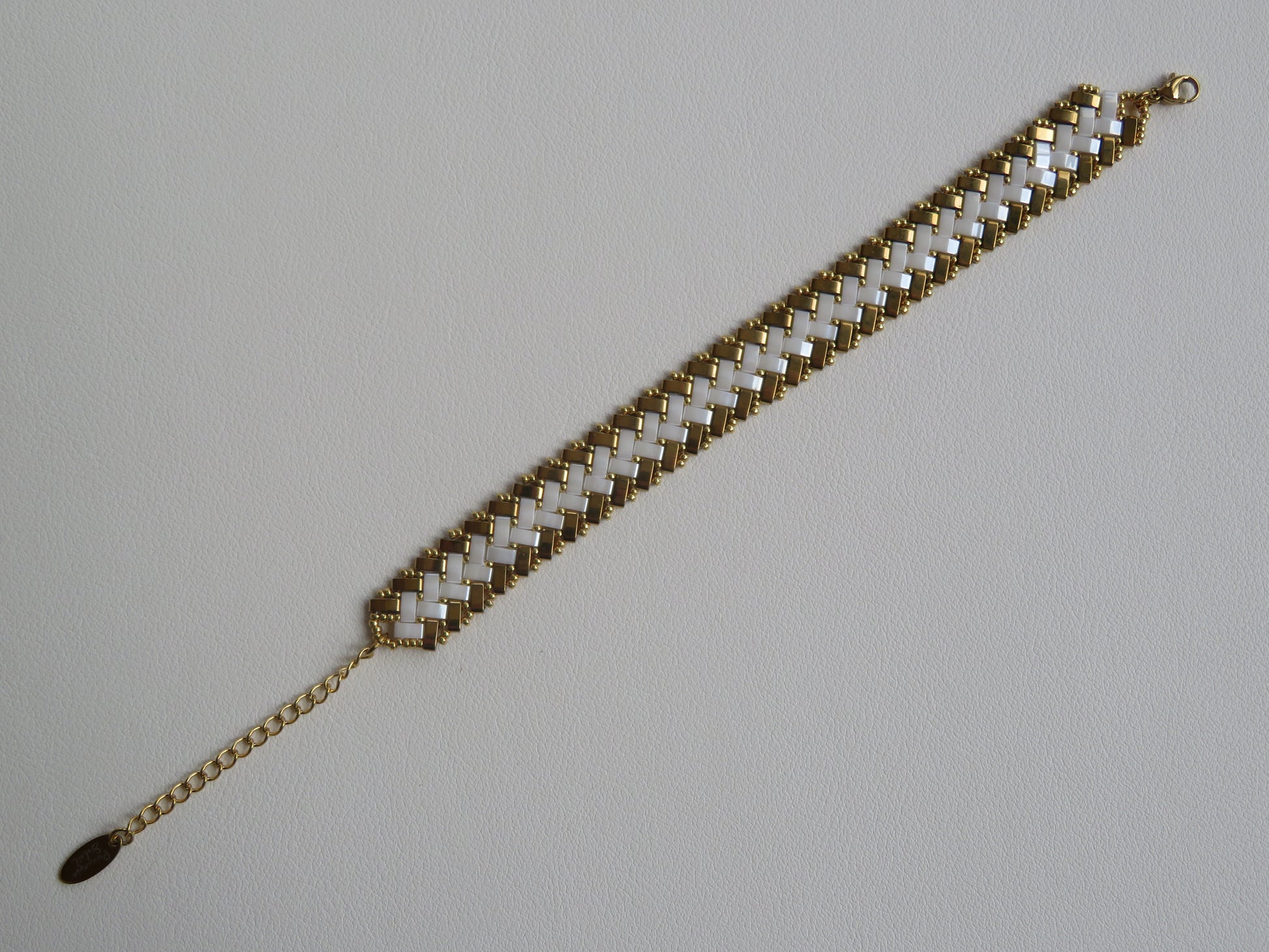 • Matériaux : Perles japonaises Miyuki (blanc & doré)