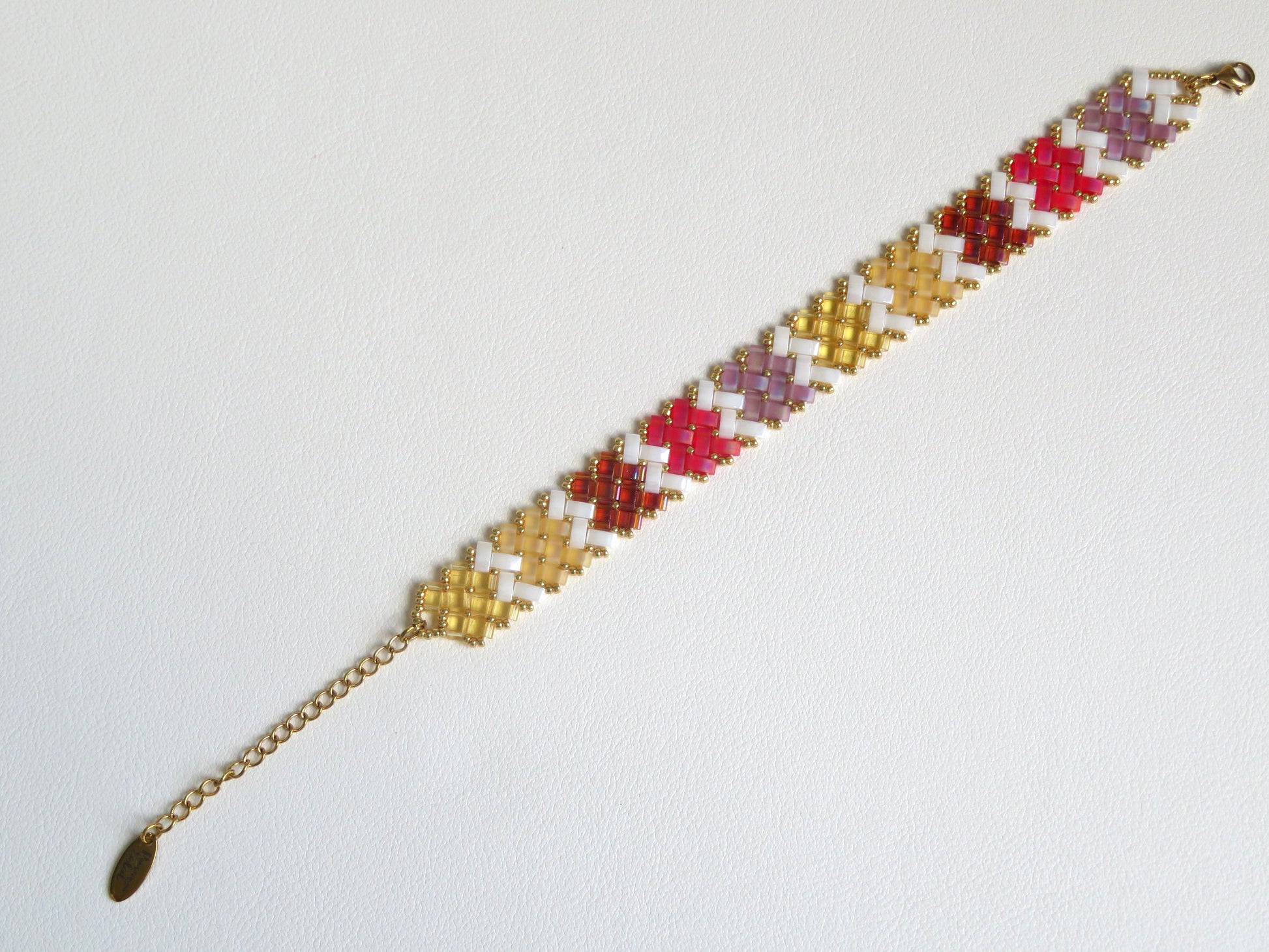 • Matériaux : Perles japonaises Miyuki (jaune, violet, orange)
