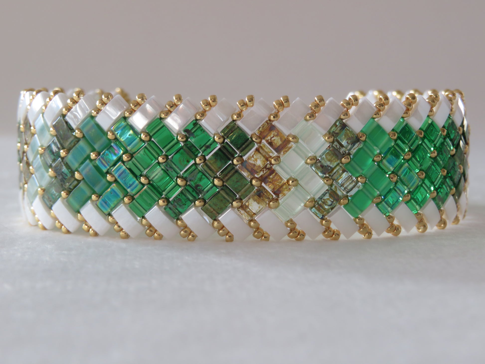 Ce bracelet 3 rangs en perles japonaises est une création artisanale réalisée à la main dans mon atelier en France.