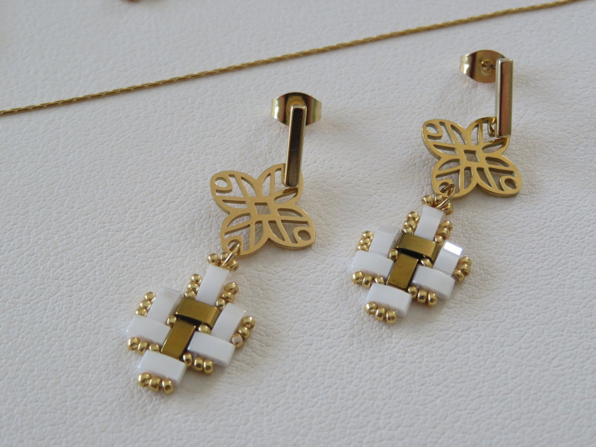 Ces boucles d’oreilles tissées à la main en perles japonaises sont une création artisanale réalisée dans mon atelier en France. Chaque paire est minutieusement travaillée pour offrir un bijou à la fois léger, élégant et confortable à porter au quotidien.