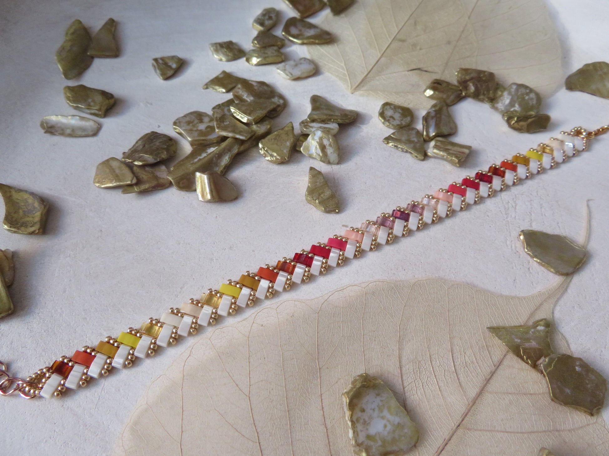 Sa construction en un seul rang lui confère une allure minimaliste et raffinée, idéale pour celles qui aiment les bijoux discrets mais pleins de caractère. Léger et agréable à porter, il habille le poignet avec douceur et se prête aussi bien à un usage quotidien qu’à des occasions plus habillées. Les nuances chaudes et naturelles qui évoquent la terre et le soleil.