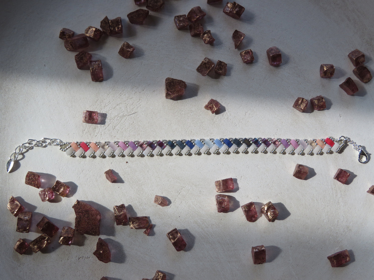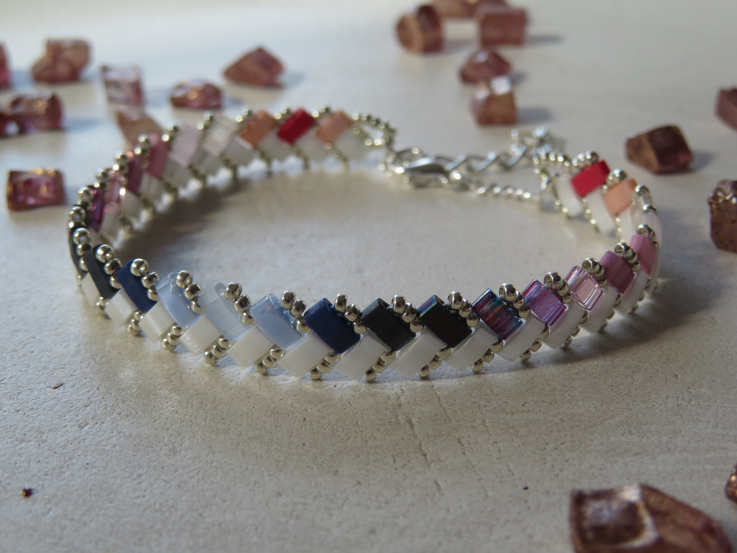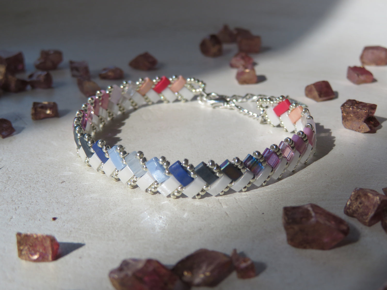 Ces bracelets tissées avec des perles en verre japonaises Miyuli Half Tila sont d'une légèreté et d'une souplesse incomparable ! Ils glisseront autour de vos poignets et apporteront un éclat de couleurs à votre tenue.