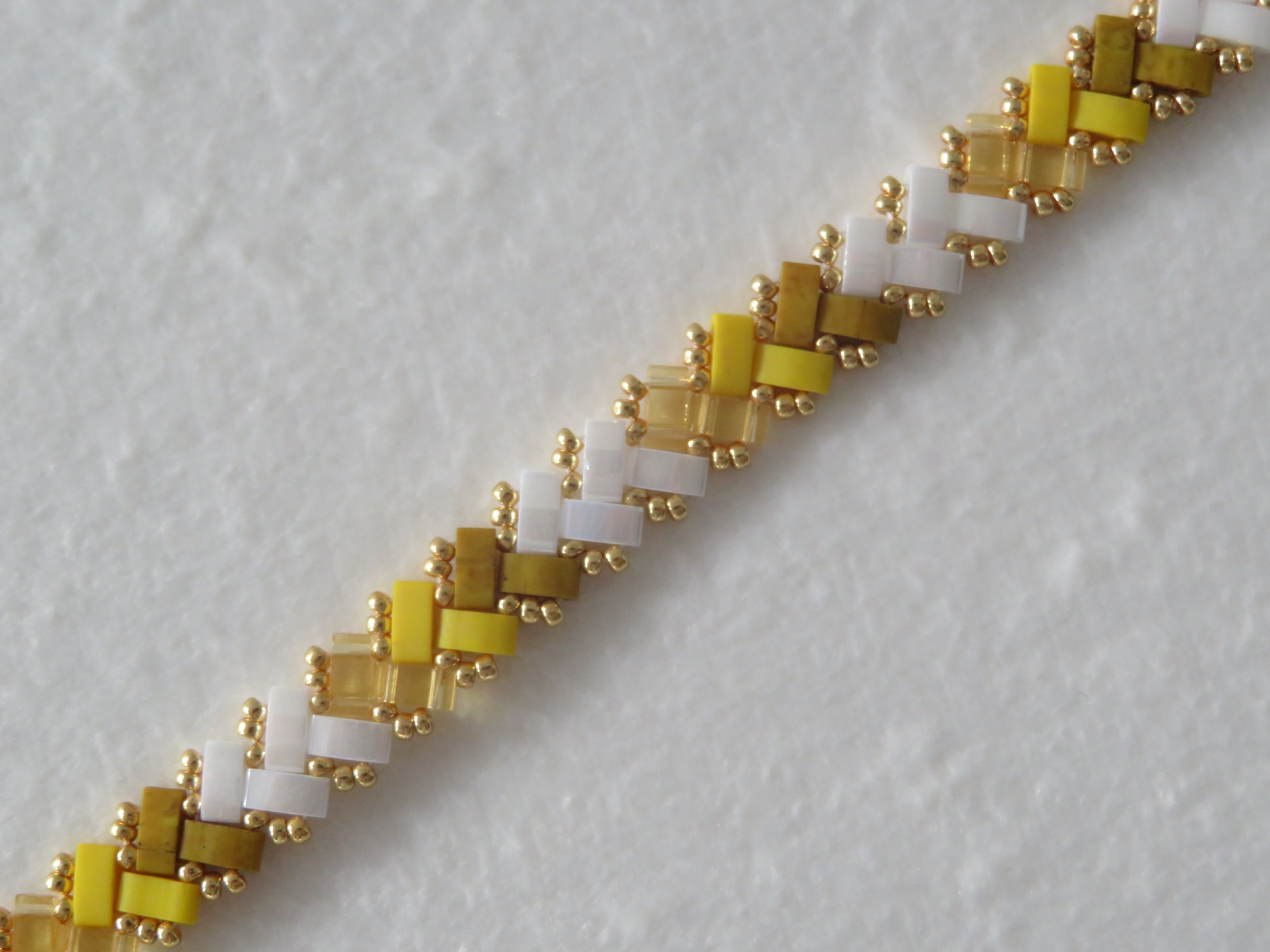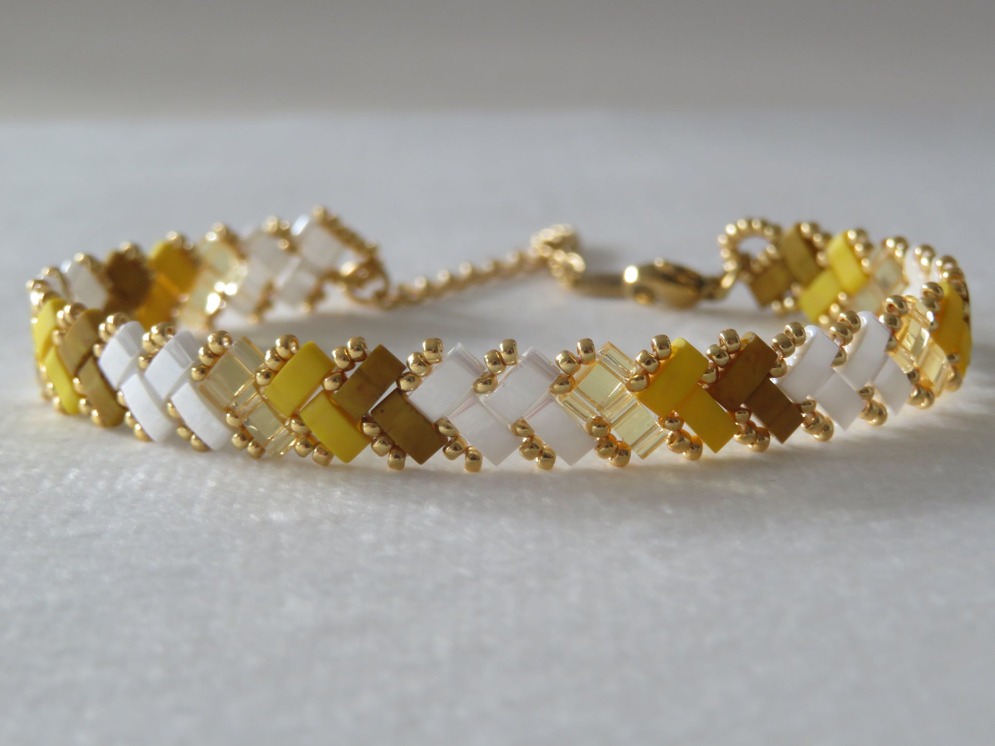Ces bracelets tissés avec des perles en verre japonaises Miyuli Half Tila sont d'une légèreté et d'une souplesse incomparable ! Ils glisseront autour de vos poignets et apporteront un éclat de couleurs à votre tenue.