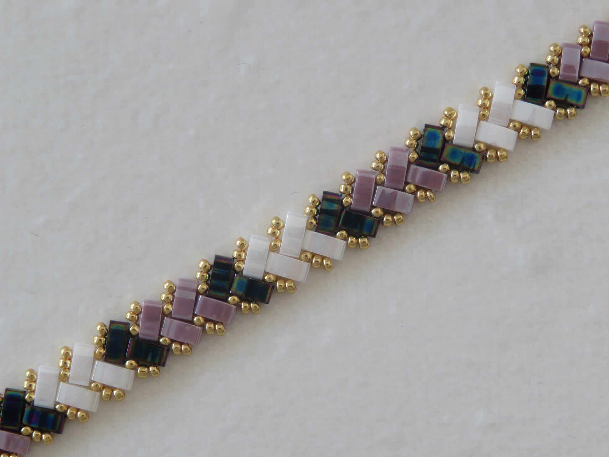 Ces bracelets tissés avec des perles en verre japonaises Miyuli Half Tila sont d'une légèreté et d'une souplesse incomparable ! Ils glisseront autour de vos poignets et apporteront un éclat de couleurs à votre tenue.