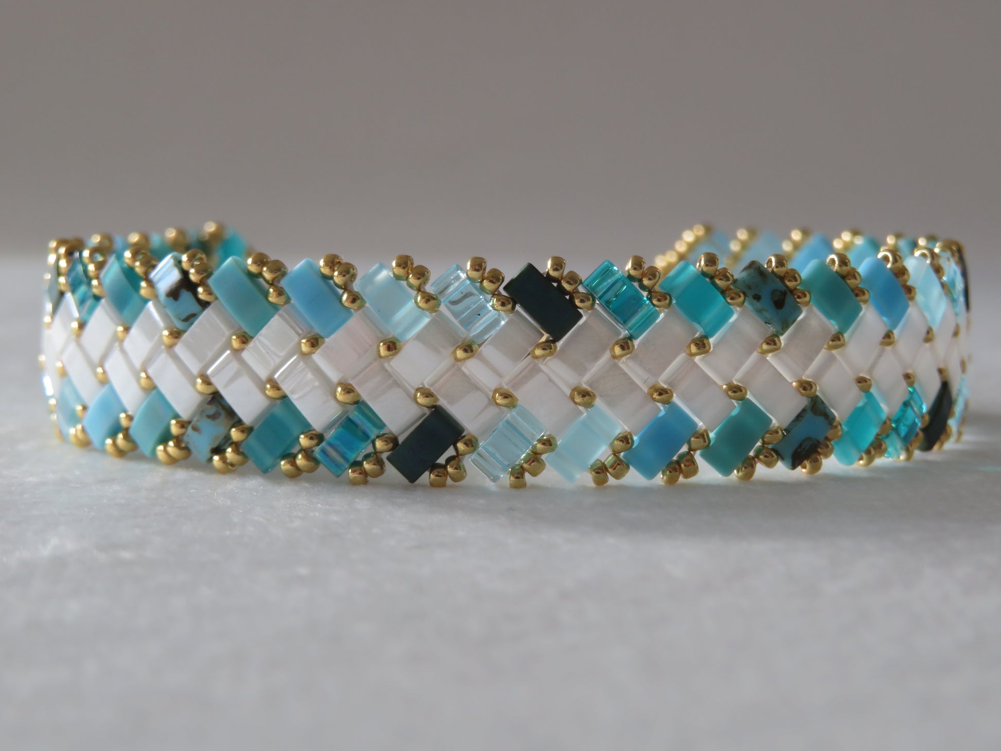 • Matériaux : Perles japonaises Miyuki (blanc & bleu)