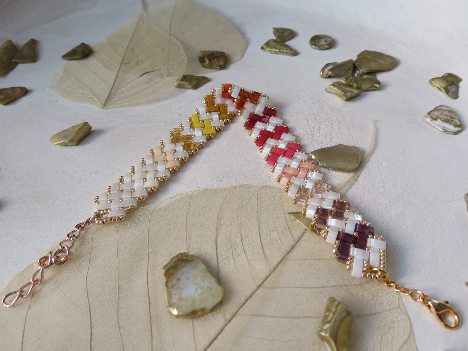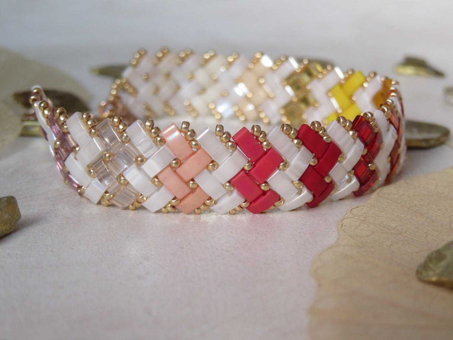 Ces bracelets tissées avec des perles en verre japonaises Miyuli Half Tila sont d'une légèreté et d'une souplesse incomparable ! Ils glisseront autour de vos poignets et apporteront un éclat de couleurs à votre tenue.